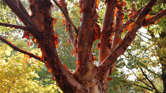 A handsome tree with an oval to rounded crown, an open habit, and upright branching. Soft green leaves turn scarlet in fall. Becomes distinctive and elegant with age, as its papery sheets of bark peel to reveal cinnamon-brown new bark. An excellent small landscape specimen or woodland understory accent.