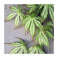 Unusual cream white spring foliage is contrasted by dark green veining. Summer foliage fades to light green but retains the veining. Part of the ghost series