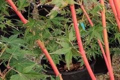 A newer cultivar, Ji Jao is notable for it's bright orange bark (tending more towards yellow in shadier conditions, which contrasts beautifully with the dark green leaves. Fall foliage is a bright crimson. It is expected to mature at 15 ft