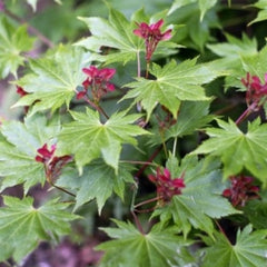 Acer shirasawanum 'Microphyllum' is a very nice maple that has small rounded leaves like the species. The orbicular leaves are deep green and somewhat shiny. 'Microphyllum' is hardy and a strong grower. Fall colors are bright oranges and reds. The plant forms a small tree to 18′.